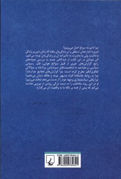 چرا دایم به سراغ اخبار میرویم؟ امروزه اخبار همان تسلطی را بر زندگیمان یافته که زمانی دین بر زندگی ما داشت. ولی ما به ندرت به تأثیرات آن بر زندگیمان توجه میکنیم. آلن دوباتن در این کتاب از دیدگاهی جدید به بررسی نمونههای رایج گزارشهای خبری از قبیل سوانح هوایی، قتل، رسوایی سیاسی، و مصاحبه با شخصیتهای سرشناس پرداخته و سؤالاتی تفکربرانگیز مطرح کرده است: چرا گزارشهای فجایع جذاباند؟ چرا به روابط عاشقان? افراد مشهور توجه و علاقه نشان میدهیم؟ چرا وقتی سیاستمداری وجه? خود را از دست میدهد لبخند میزنیم؟ او در این روند مخاطب را به سمت درکی روشن از نیرویی هدایت میکند که بیش از همه بر نگاه ما به واقعیت اثر میگذارد.